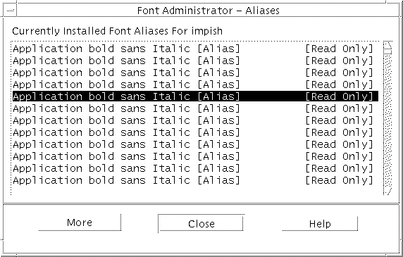 Note - You must run Font Administrator as the root user to be able to view and manage printer fonts.