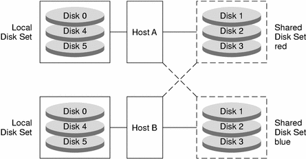 Figure 19-1 shows an example configuration that uses two disk sets.