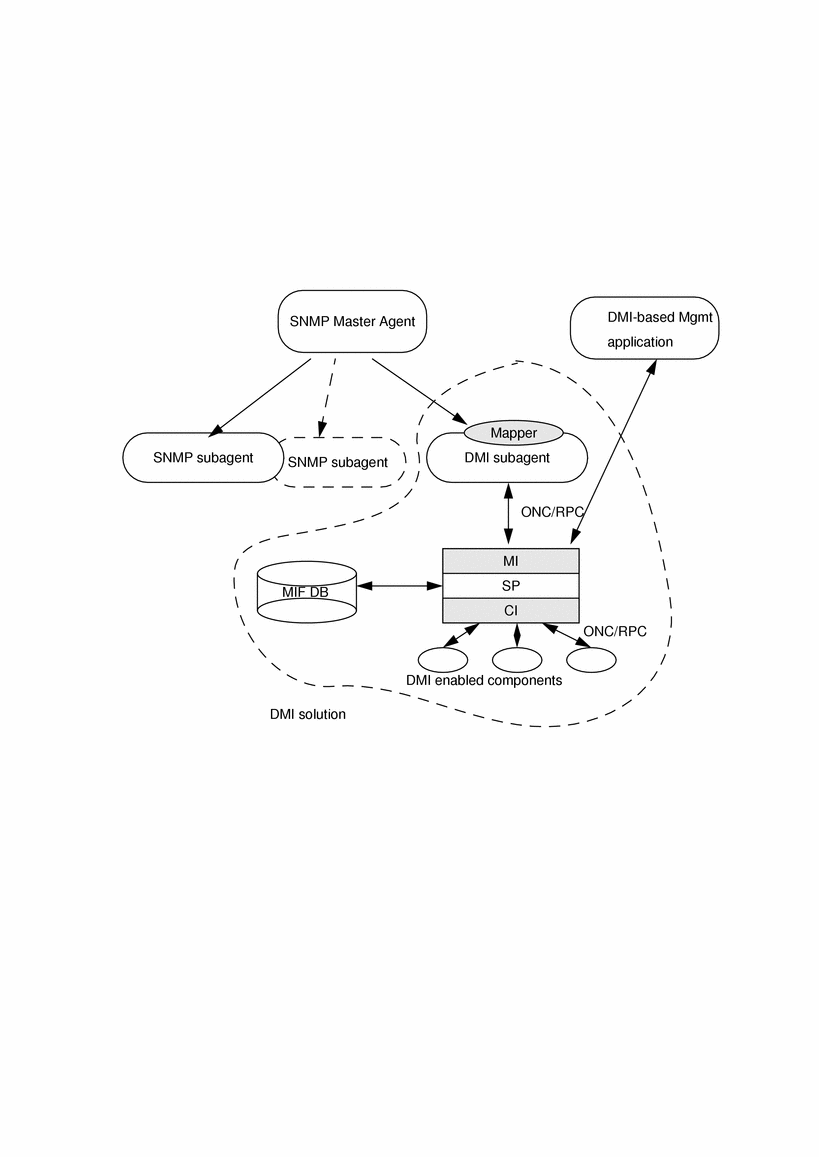 In the SNMP subagent mode, the SNMP requests are mapped to DMI requests and are communicated with DMI SP. In the direct mode, the management applications may directly interact with the SP using DMI.