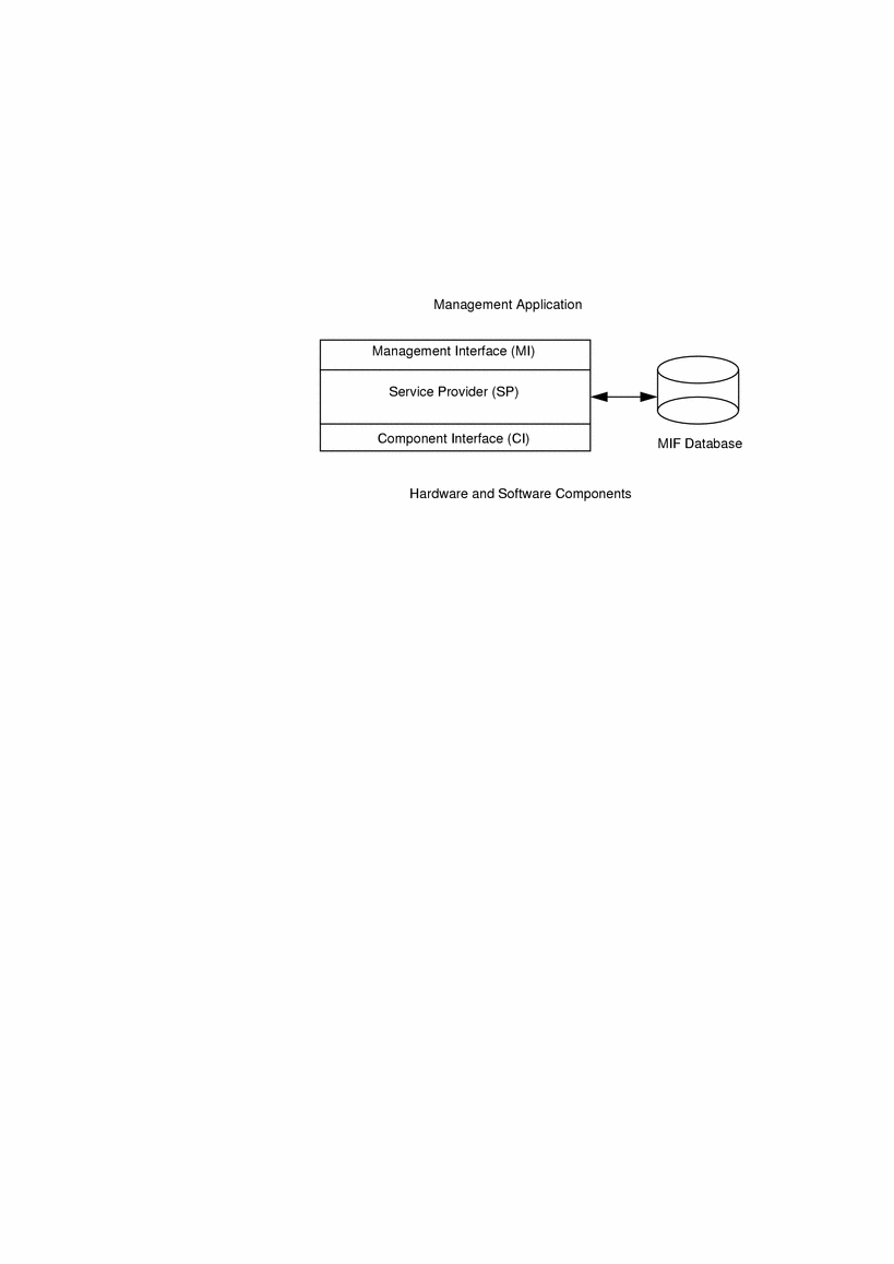 The DMI SP is the core of the DMI solution. Management applications and Component instrumentations communicate with each other through the SP. The SP coordinates and arbitrates requests from the management application to the specified component instrumentations. SP handles runtime management of the Component Interface (CI) and the Management Interface (MI), including component installation, registration at the MI and CI level, request serialization and synchronization, event handling for CI, and general flow control and housekeeping.