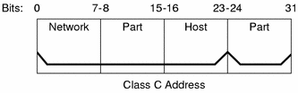The first byte of a class C network number covers the range 192-223. The second and third bytes each cover the range 1- 255. A typical class C address might be 192.5.2.5. The first three bytes, 192.5.2, form the network number. The final byte in this example, 5, is the host number.