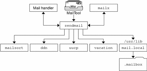 Figure 26-4 shows how sendmail interacts with the other programs in the mail system.