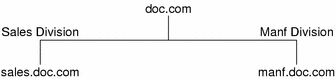 Each division could be identified by its network address, as shown above, but descriptive names made possible by naming services would be preferable.