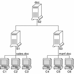 For example, assume that the doc.com network is supported by three servers, S1, S2, and S3, and that two of those servers, S1 and S3, support clients.