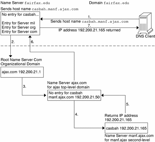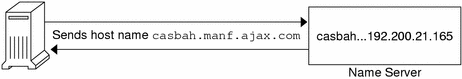The following figure shows name-to-address mapping as it occurs between a DNS client and a name server, probably on the client's local network.