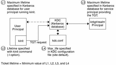Any time a principal obtains a ticket, including a ticket-granting ticket, the ticket's lifetime is set as the smallest of the following lifetime values: