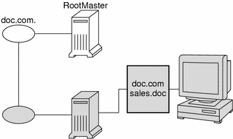 In other words, a server supports clients in one domain, but is a client of another domain. A server cannot be a client of a domain that it supports, with the exception of the root domain. Because they have no parent domain, the servers that support the root domain belong to the root domain itself.