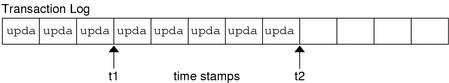 The transaction log is used by a master server to store changes to the namespace until they can be propagated to replicas. A transaction log has two primary components: updates and time stamps.