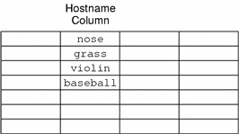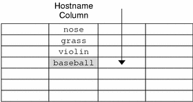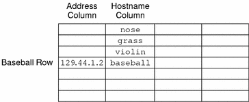 A client can access information by a key, or by any column that is searchable. For example, to find the network address of a machine named baseball, a client could look through the hostname column until it found baseball.