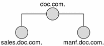 Now assume that the search path of the hosts table in the sales.doc.com. domain listed the hosts table from the manf.doc.com. domain: