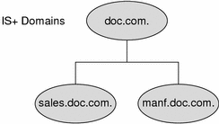 For example, suppose the DOC company has Sales and Manufacturing divisions. To support those divisions, its NIS+ namespace would most likely be arranged into three major directory groups, with a structure that looked like this: