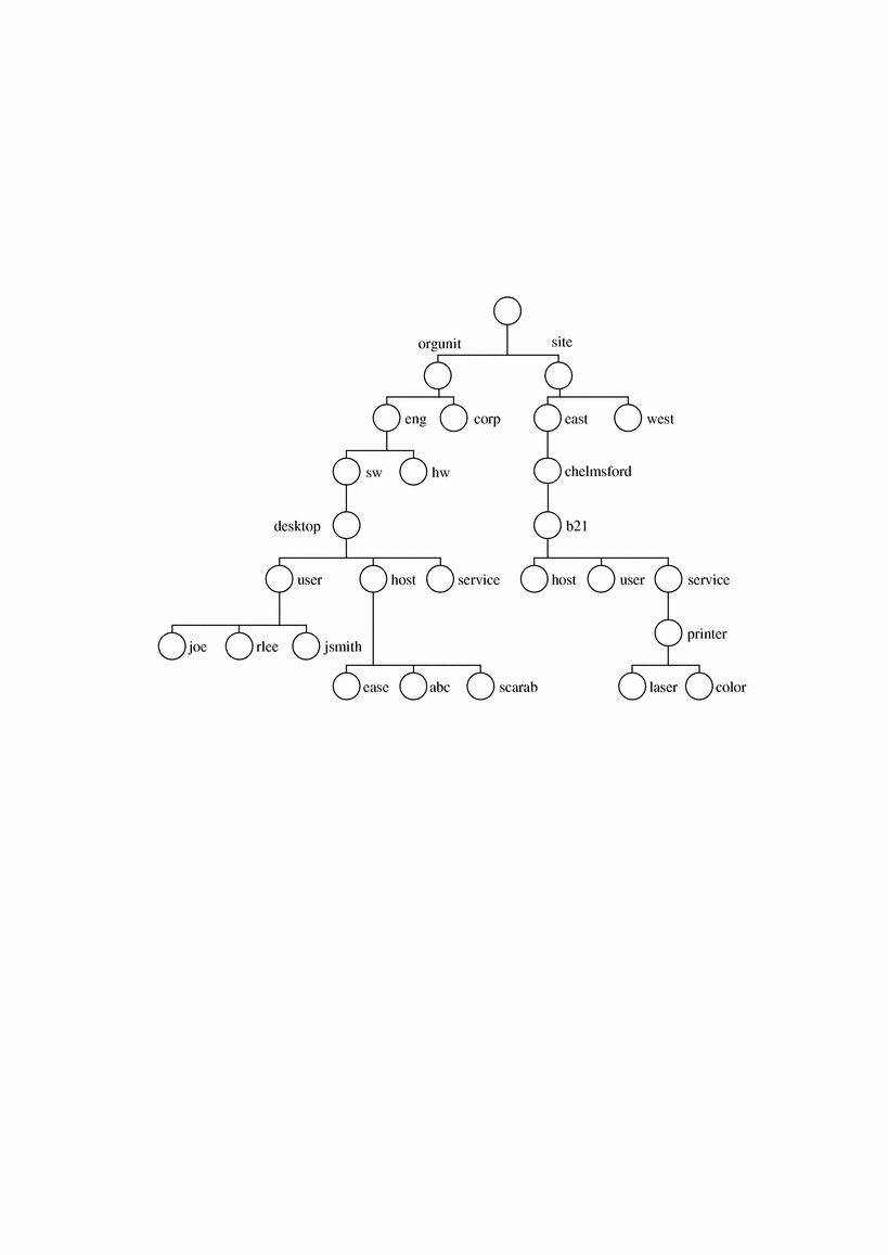 In Figure 1-3, a user, jsmith in the engineering organization of an enterprise, is named using the name orgunit/desktop.sw.eng/user/jsmith
