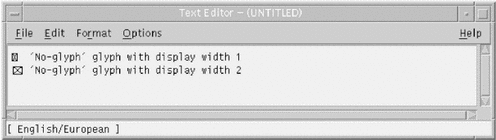 If you try to view characters for which the en_US.UTF-8 locale does not have corresponding glyphs, the locale displays a "no-glyph" glyph instead, as shown in the following illustration: