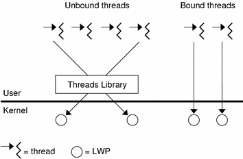 Each bound thread is bound to an LWP for the lifetime of the thread. This is equivalent to creating a Solaris thread in the THR_BOUND state. You can bind a thread to use special scheduling attributes with Realtime scheduling.