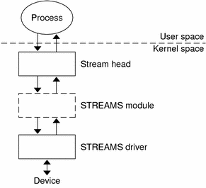 An application opens a STREAMS device, which creates the stream head to access the device driver. The stream head packages the data from the user process into STREAMS messages, and passes it downstream into kernel space. One or more cooperating modules can be pushed on a stream between the stream head and driver to customize the stream and perform any of a range of tasks on the data before passing it on. On the other hand, a stream might consist solely of the stream head and driver, with no module at all.