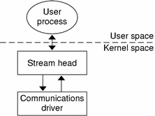 The stream head is created when a user process opens a STREAMS device. It translates the interface calls of the user process into STREAMS messages, which it sends to the stream. The stream head also translates messages originating from the stream into a form that the application can process. The stream head contains a pair of queues; one queue passes messages upstream from the driver, and the other passes messages to the driver. The queues are the pipelines of the stream, passing data between the stream head, modules, and driver.