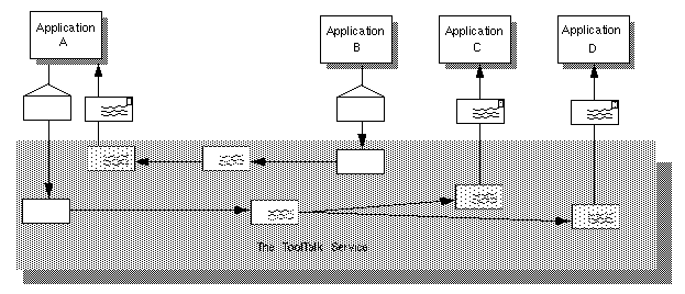 Another significant application for which the Desktop Services Message Set can be implemented is integrated toolsets. These environments can be applied in vertical applications (such as a CASE software developer toolset) or in horizontal environments (such as compound documents). Common to both of these applications is the premise that the overall solution is built out of specialized applications designed to perform one particular task well. Examples of integrated toolset applications are text editors, drawing packages, video or audio display tools, compiler front-ends, and debuggers. The integrated toolset environment requires applications to interact by calling on each other to handle user requests. For example, to display video, an editor calls a video display program; or to check a block of completed code, an editor calls a compiler. The following scenario illustrates how Desktop Services Message Set might be implemented as an integrated toolset: