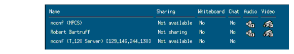 Use during a call to view the status of conference participants and the status of the application sharing, whiteboard, and chatting features.