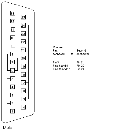 FIGURE A-2 25-pin RS-232 Port-to-Port Loopback Cable Wiring Diagram