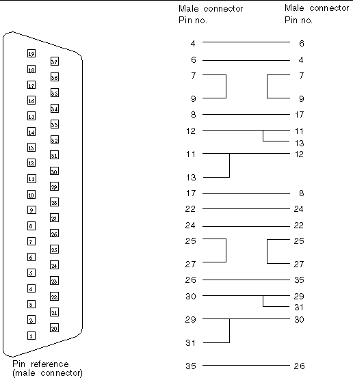 Use these wiring instructions for making a male 37-pin RS-449 loopback plug. This connector is also available from Sun (part number 530-1430).