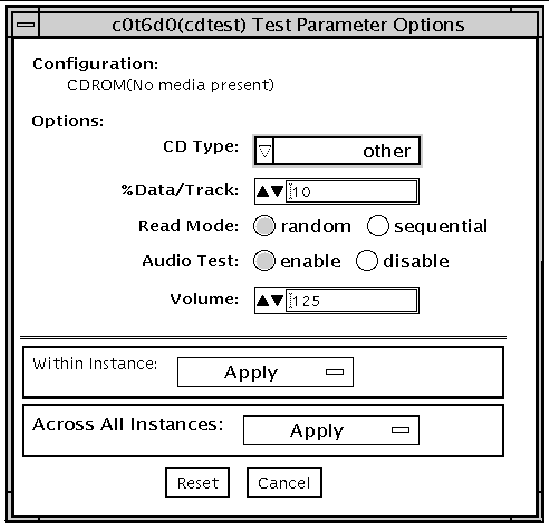 FIGURE 7-1 cdtest Test Parameter Options Dialog Box