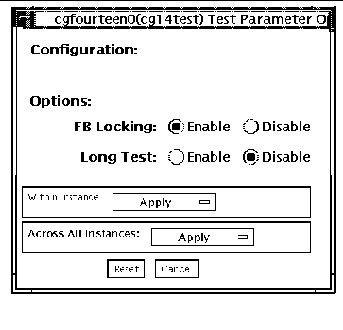 /opt/SUNWvts/bin/cg14test standard_arguments -o dev= device_name , lock= E(nable)/D(isable) ,L,I