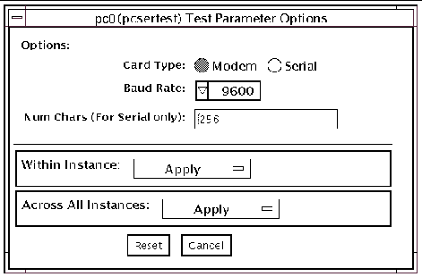 FIGURE 40-1 pcsertest Test Parameter Options Dialog Box