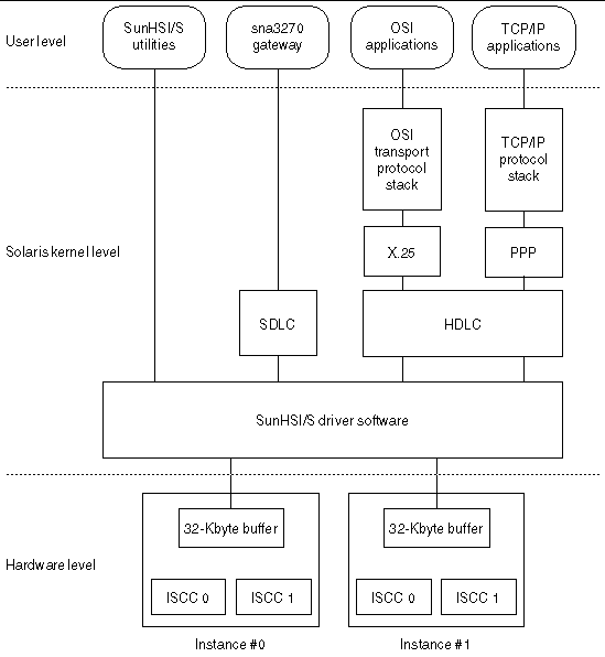 The SunHSI/S 3.0 driver provides a streams-based interface to the Solaris kernel and user program. The driver software can be reached from the user program through standard open(2) , close(2) , putmsg(2) , getmsg(2 ), and ioctl(2) system calls. The driver software communicates with other kernel resident (upper protocol) streams modules using the standard utility putnext(9F) .