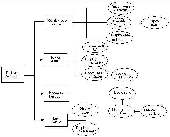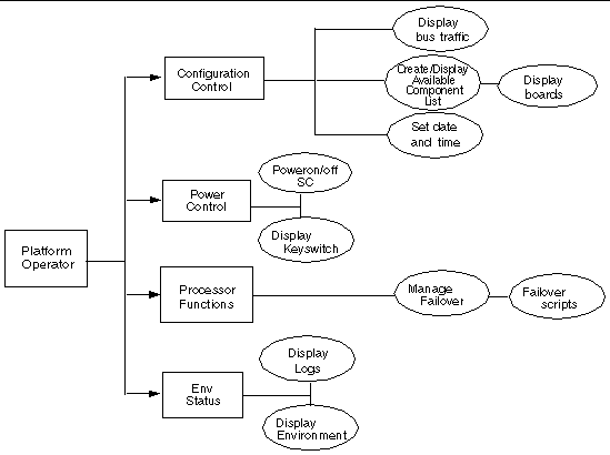 The group identified as the platform administrator ( platadmn ) group provides configuration control, a means to get environmental status, the ability to assign boards to domains, power control, and other generic service processor functions. In short, the platform administrator group has all platform privileges excluding domain control and access to installation and service commands ( FIGURE 2-1 ).