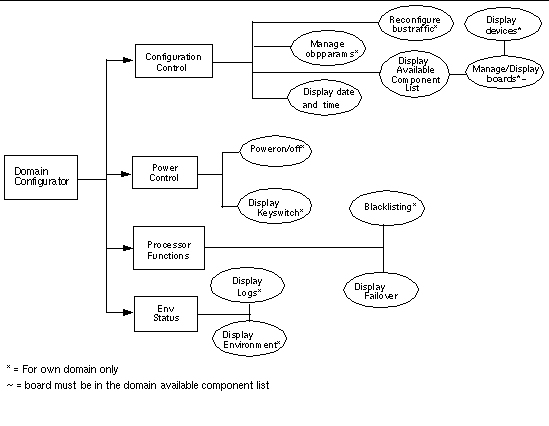 Each domain administrator has access to the Solaris console for that domain and the privilege to exert control over the software that runs in the domain or over the hardware assigned to the domain.